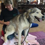 Ostara and BonnieOstara has been receiving massage for her hip dysplasia for quite some time.  She started getting weekly massages when she lived in Virginia, and continued with me while her owner lived in the Inland Empire.  Over a period of about 6 months, Ostara would visit with me one to two times per week for her massage.  We always did a full body massage to help those muscles that are compensating for her weaker hind limbs, but we spent time focusing on her hind limbs as well.  With joint supplements, a good diet, regular check up and care from her veterinarian and her massages, she has been managing pretty well.  Just like us, when the weather is colder, the joints are stiffer, and massage made a difference for her during those periods.  It was such a pleasure to massage Ostara and she is now back in Virginia again.  She was an excellent client and I so enjoyed having her visit.  Watching her receive pleasure and relief from achy muscles made my day complete.